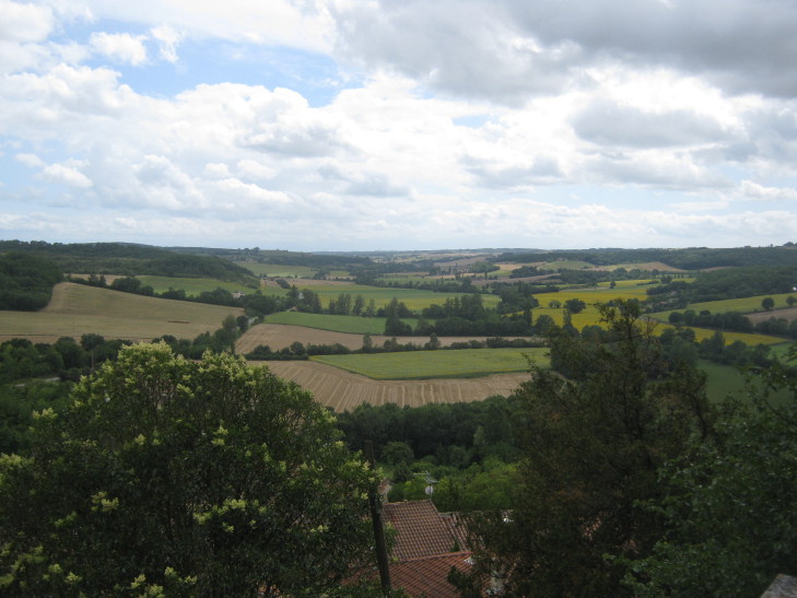 Tal des Arrats, Blick vom Schlosshügel Castelnau Barbarens Richtung Norden, am oberen Bildrand in der Mitte ist unsere Ferme.