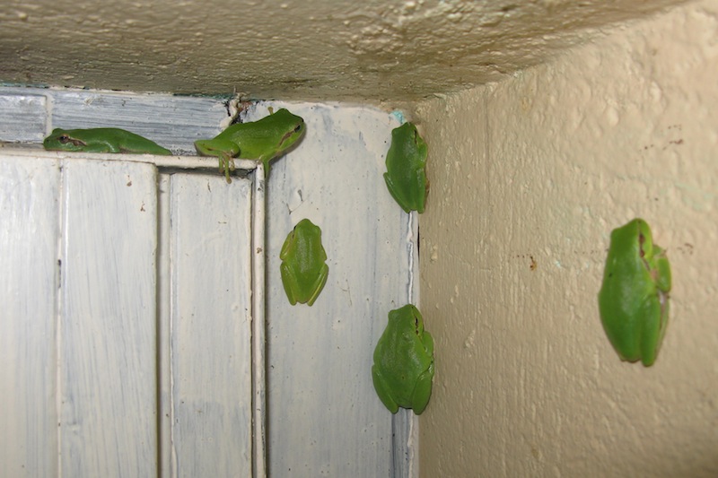 Nachts tummeln sie sich an unseren Fensterscheiben und lauern auf Insekten, die durch das Licht angezogen werden. Tagsüber verstecken sie sich hinter den Fensterläden wo es offenbar etwas kühler ist. Sie sind schon fast so zutraulich wie Haustiere!