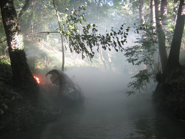 15.00 Erste Tests fahren. Wie sehen die Installationen aus? Wie verhält sich der Rauch?