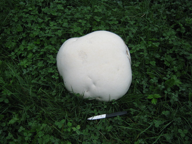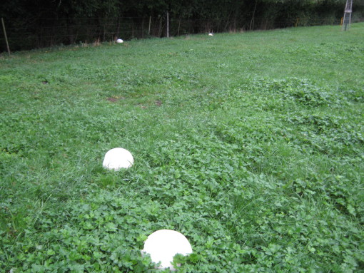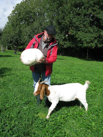 … aus nah und fern. Ich habe auf unserer Dauerweide acht Riesenpilze entdeckt (war ja auch nicht schwierig, die Dinger sehen von weitem aus fast wie liegende Burenziegen!).