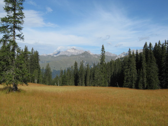 Auf dem Bergwanderweg von Sankt Antönien auf das Chrüz begegnet man diese Moorlandschaften. Obschon sich das Moor auf einer Höhe von 2000 m.ü. M. befindet, handelt es sich m. E. nicht um ein Hochmoor sondern um ein Niedermoor.