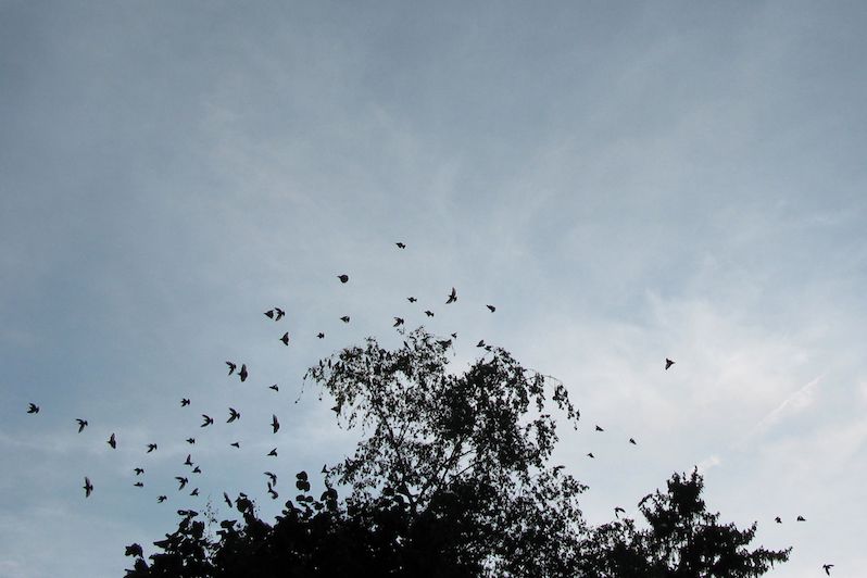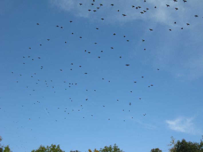 Eigentlich warten wir auf den Storch ;)… aber bisher kamen nur die Stare. Dafür gleich scharenweise… Besammlung vor der weiten Reise in den Süden.