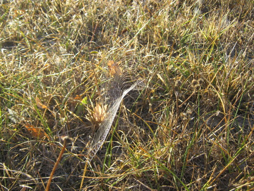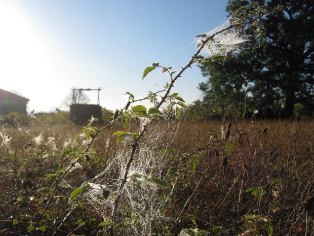 Sah‘ es heut morgen – dies herrlich Spinnennetzdie Fäden, alle mit Tröpfchen von Tau benetzt
