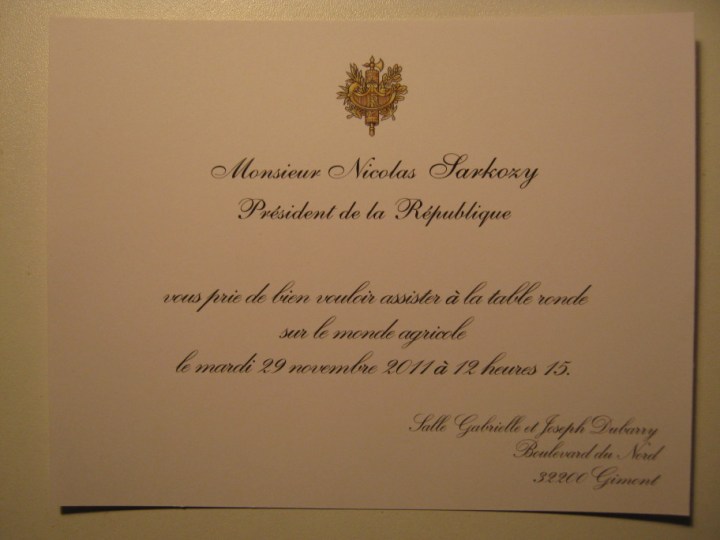 Jetzt kämpft er um seine Wiederwahl im Frühjahr 2012. Sein Wahlkampf (obschon er persönlich das nicht so sieht) führt ihn nächsten Dienstag in unsere Gegend. Er will einen Bauernbetrieb im Gers besuchen und anschliessend hat er lokale Würdenträger und Bäuerinnen und Bauern zu einem „table ronde sur le monde agricole“ eingeldaden.