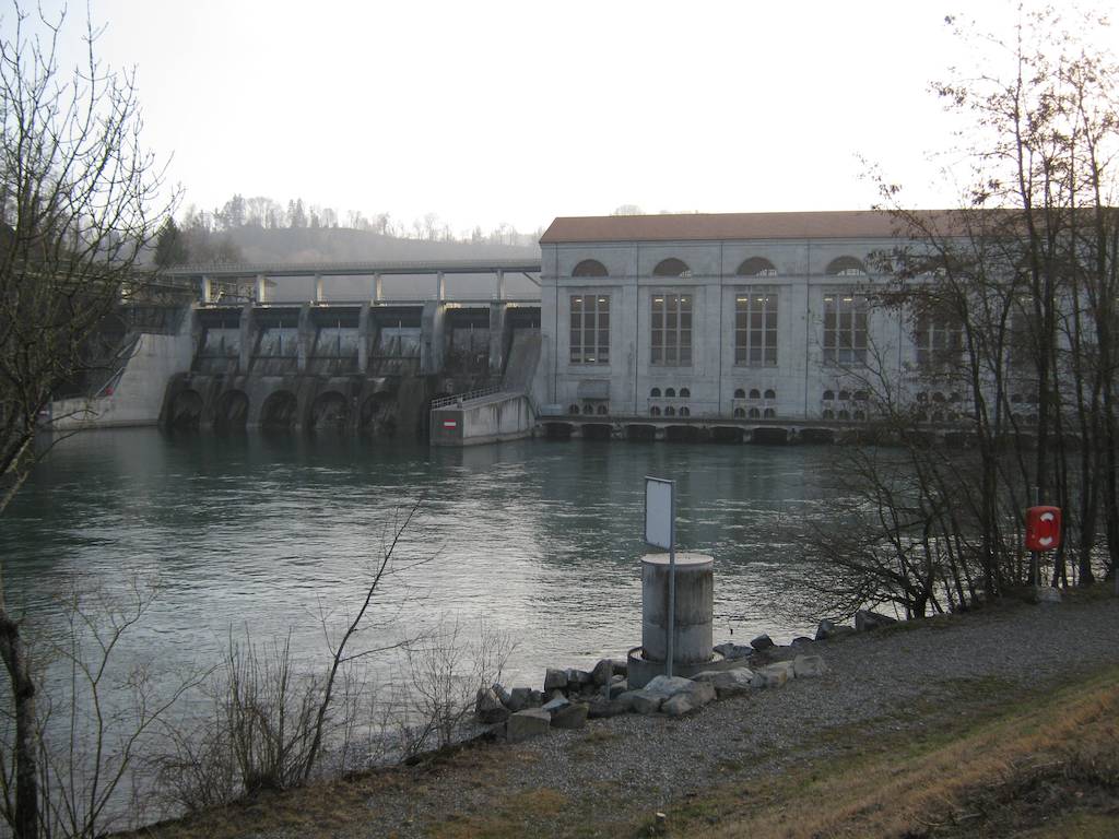 Knapp zwei Kilometer oberhalb des Atomreaktors befindet sich die 1920 erbaute Staumauer des Wohlensees.