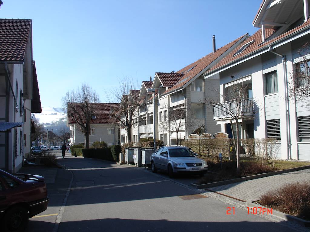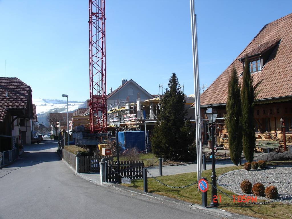 Vor einer Woche habe ich aus den alten Jahresberichten des Schweizer Heimatschutzes eine Dorfstrasse aus den 40er Jahren des letzten Jahrhunderts abgebildet. Ein aufmerksamer Blogleser hat herausgefunden, dass es sich dabei um die Hintergasse im bernischen Münsingen handelt, und er hat mir – oh Schreck – die Bilder zugestellt, wie sich die Dorfstrasse heute präsentiert…