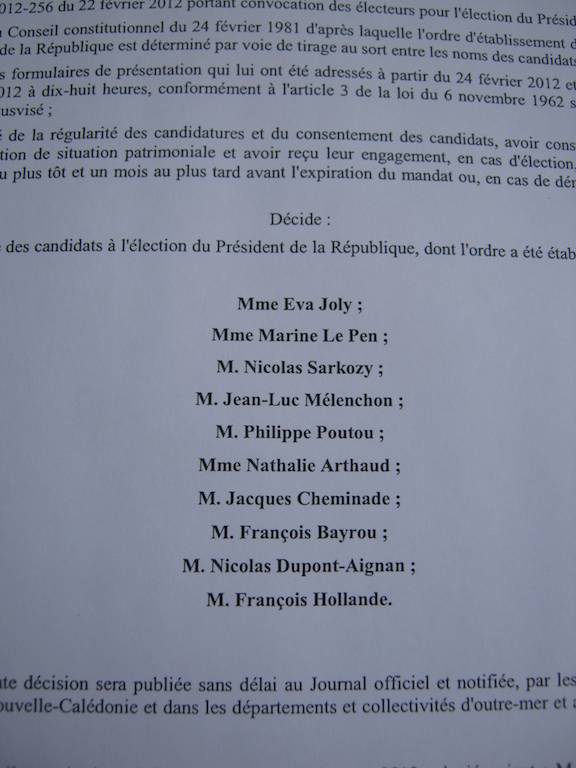 So sind die zehn Kandidaten an unserer Mairie angeschlagen (die Reihenfolge wurde ausgelost)…
