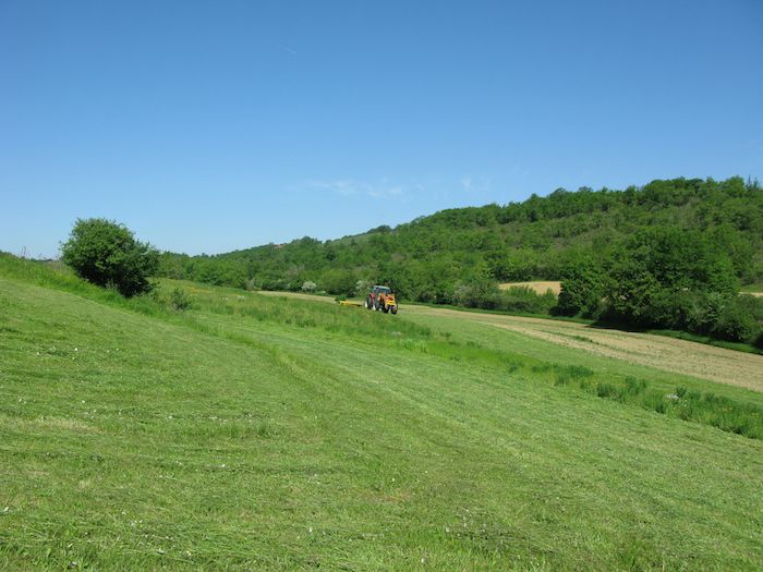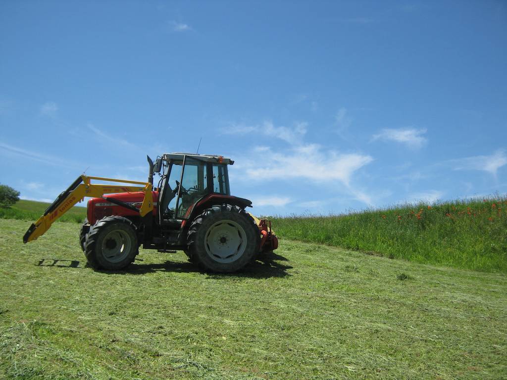 Heu mähen von morgen früh bis abends spät (nur die Luzerne, nicht die Orchideenwiesen)…