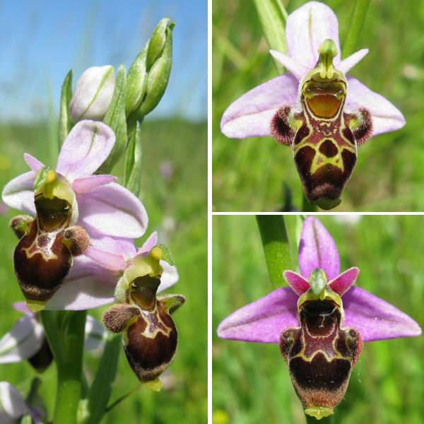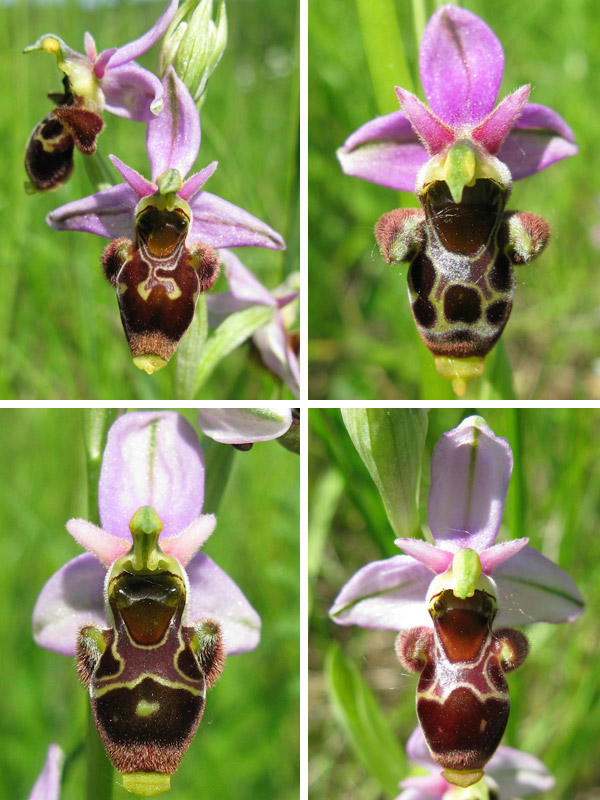 Diese Ophrys sehen nur aus der Ferne alle gleich aus. Jeder Blütenstand hat seine eigene, ganz spezielle Zeichnung auf der sogenannten Blütenlippe: