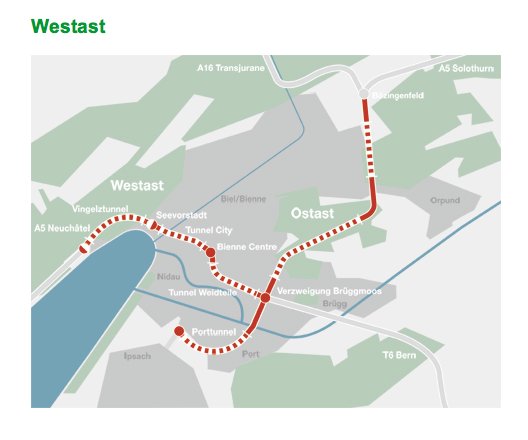 Während am sog. Ostast seit Jahren gebaut wird, liegt nun ein Projekt für den Westast zur Vernehmlassung auf, das, wenn alles gut läuft, so bis im Jahr 2030(!) definitiv realisiert werden soll.