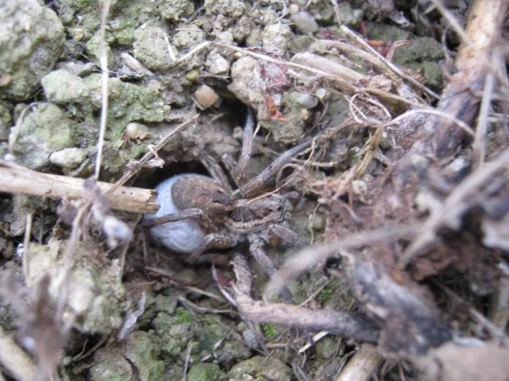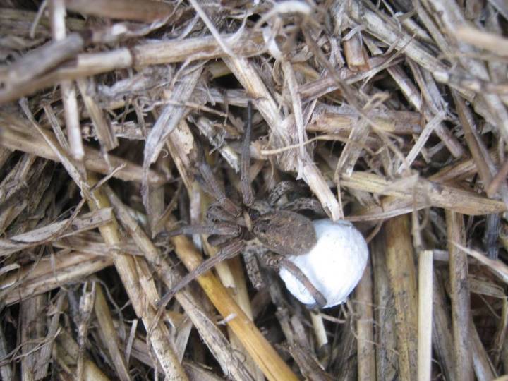 die Spinne trägt ihren eigenen Eierkokon mit sich…