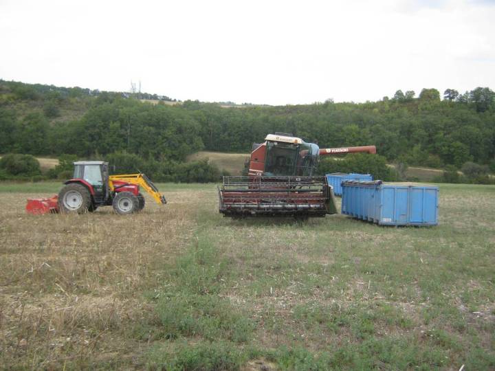 Die Stengel werden gehäckselt (broyen) und anschliessend als organischer Dünger in den Boden eingearbeitet.