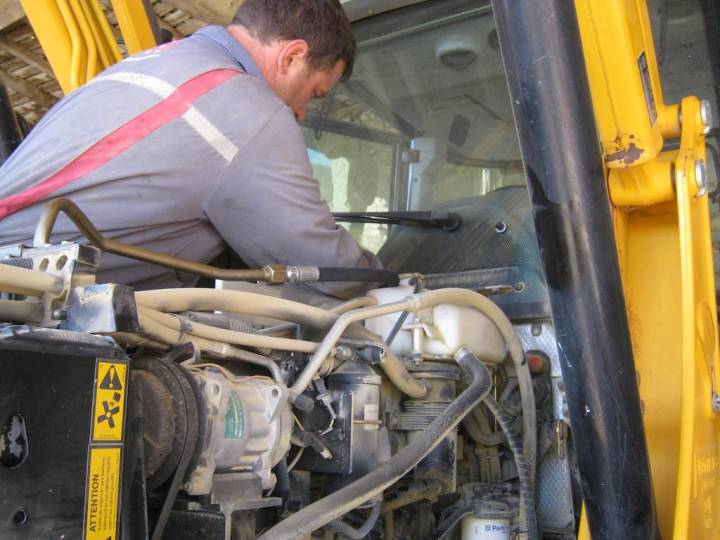 Während drei Stunden hat der Landmaschinenmechaniker Leitungen, Schläuche und Kabel entfernt um an den defekten Hydraulikschlauch zu kommen. Aber er hat es geschafft.
