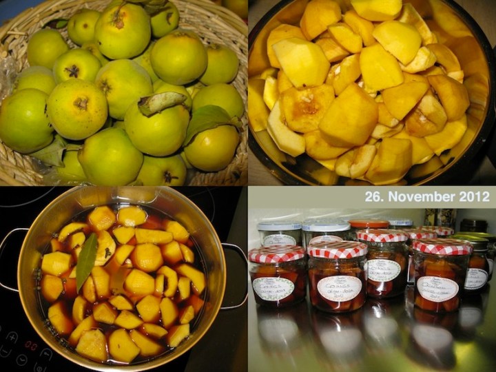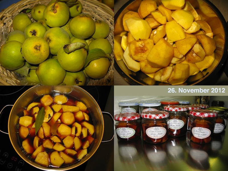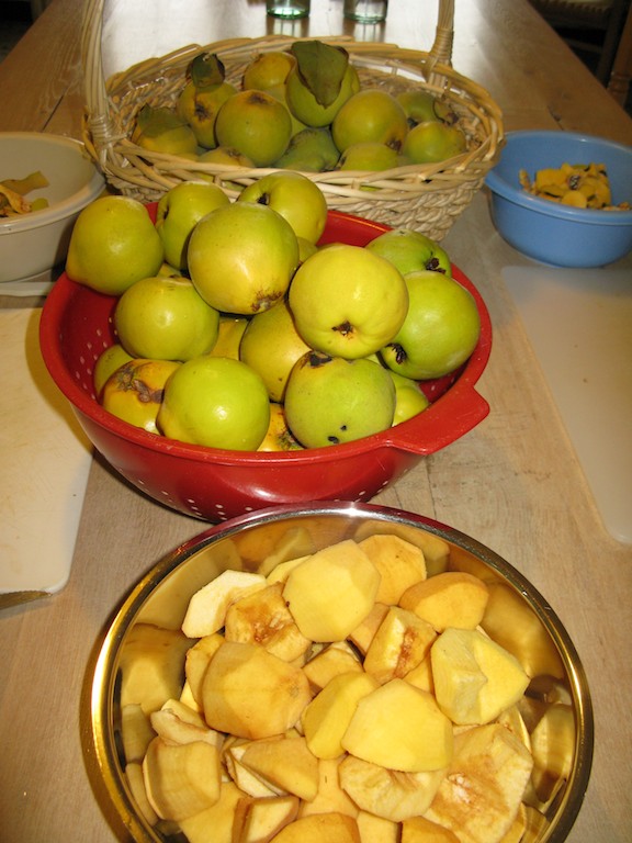 Selbstversorgung wird bei uns gross geschrieben. Gestern haben wir einen Teil der reichen Quittenernte verarbeitet.