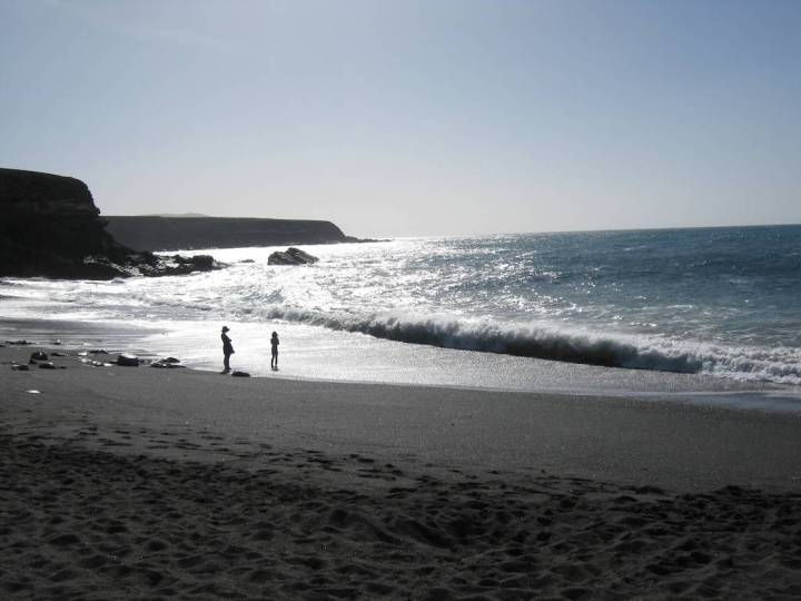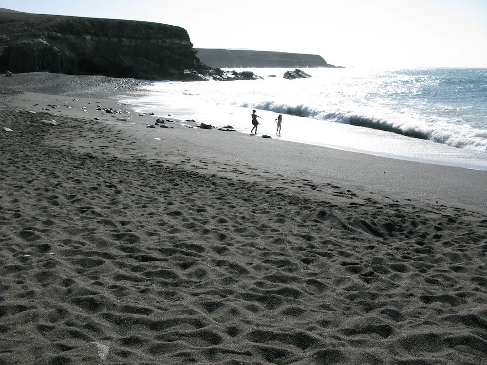 An der Westseite von Fuerteventura gibt es zahlreiche Steilküsten und schwarze Sandstrände.