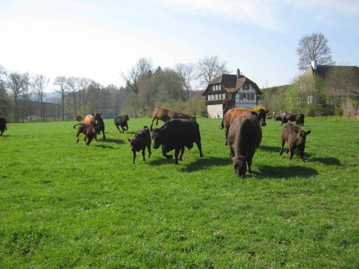 Die Angus/Aubrac Herde geniesst die Frühjahrsweide genauso…