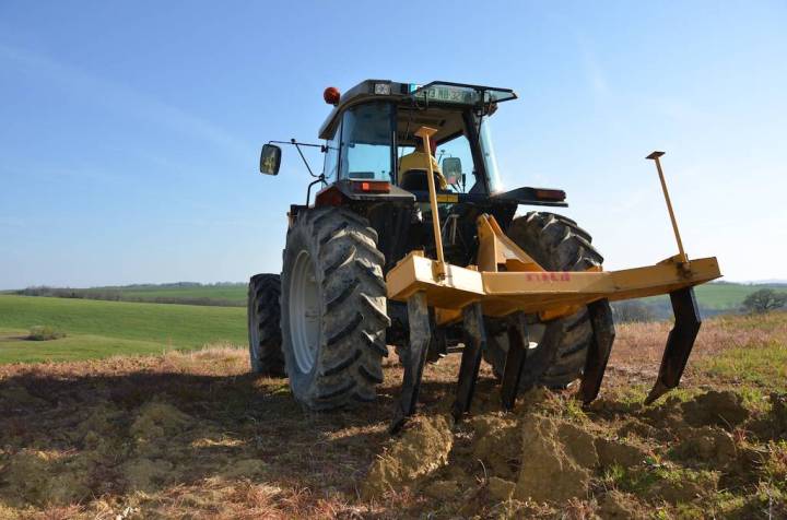 Zuerst wird der Boden mit dem Grubber gelockert…