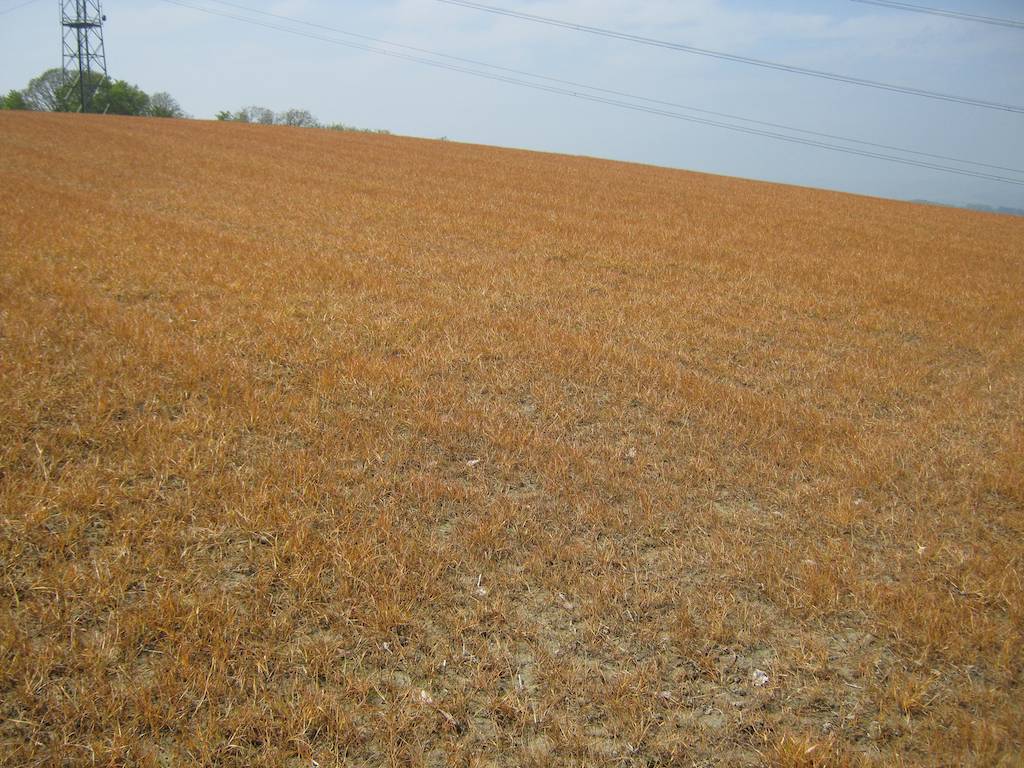 Aber halt, auffallend viele Äcker sind gelb, die Pflanzen zu Tode gespritzt, Folge einer Radikalkur mit einem Totalherbizid, damit die Unkräuter im neuen Saatbett keine Chance mehr haben.