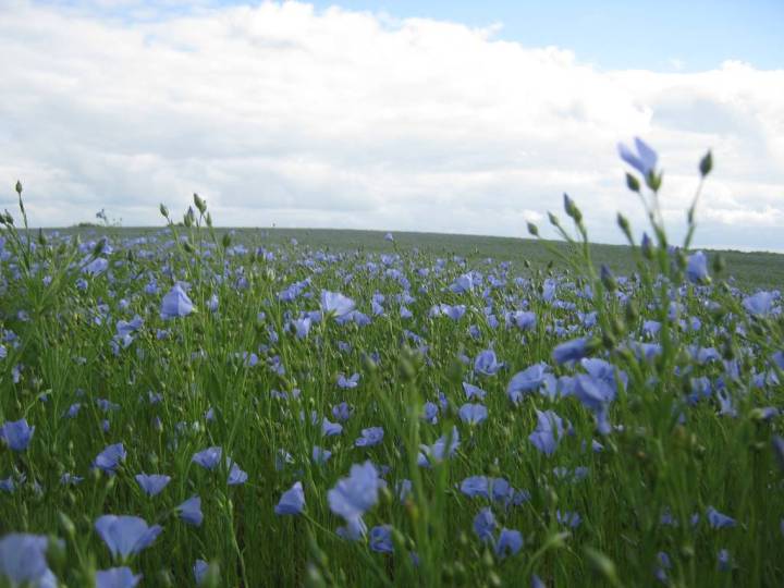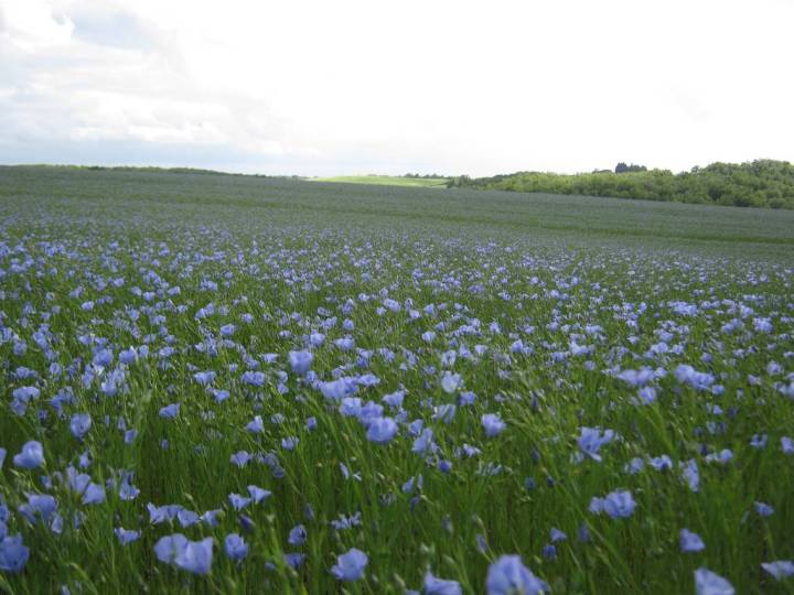 Lin (Leinen) so weit das Auge reicht. Produktion von Leinsamen in Traversères.
