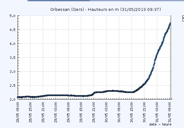 … wen wunderts? Die Messtation in Orbessan am Gers zeigt, dass der Wasserstand von 2 auf 4.5m angestiegen ist.