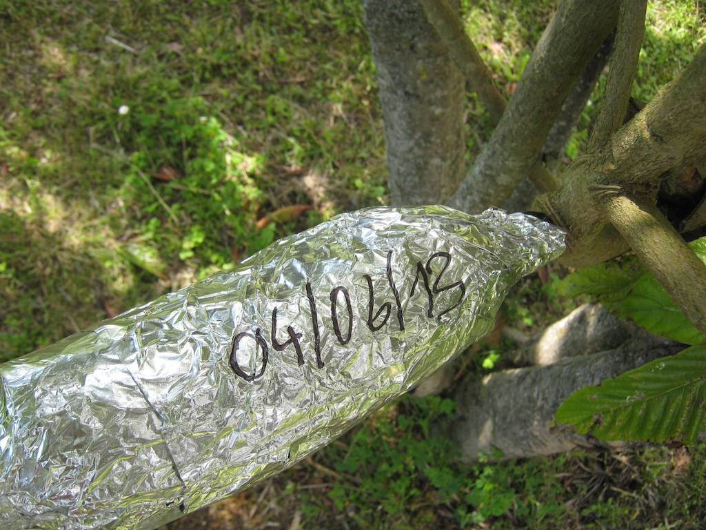 Zu diesem Zweck wird die Rinde auf einem jungen gesunden Trieb auf etwa 5 cm Länge sauber weggeschnitten. Danach die Verletzung mit Honig (und ev. Pflanzenhormonen?) eingestrichen.