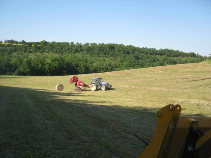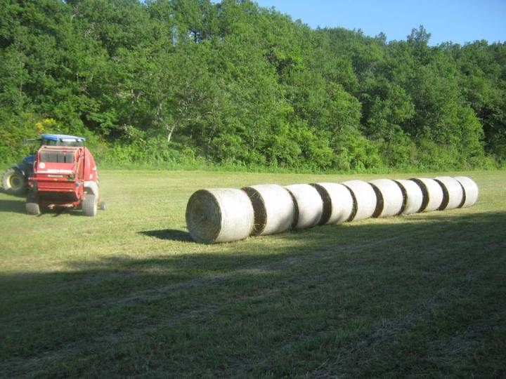 Mehr als dreissig Tonnen schön trockenes Bioheu hat mir mein Nachbar am Sonntagnachmittag gepresst (65 Rundballen). Jetzt kann ich mit den zweifelhaften Wetteraussichten wiederum etwas gelassener umgehen…