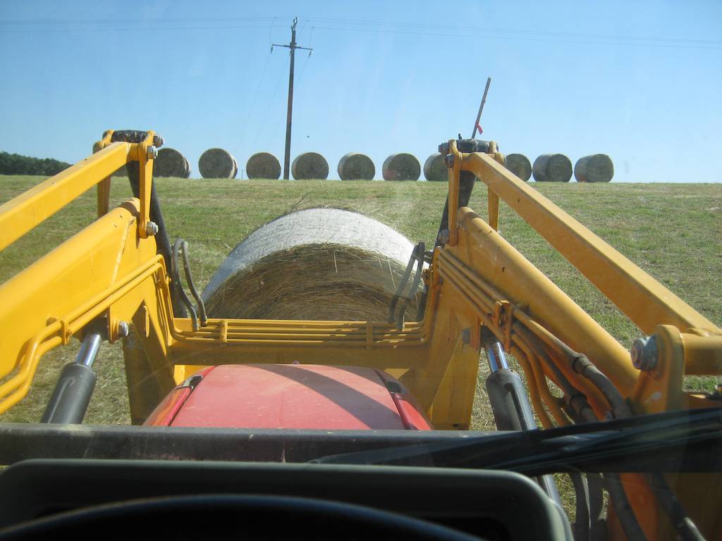 Das ist zwar nicht ganz richtig, weil hierzuland die Rundballen auf dem Feld bleiben. Im Gegensatz zu Quaderballen läuft der Regen schön ab ohne in das Heu einzudringen und die Gärung (Erhitzung!) lauft im Freien problemlos ab.