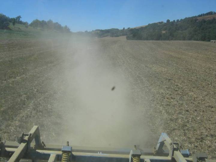 Déchaumer les champs, Erntereste einarbeiten, Boden aufreissen, damit die unerwünschten Unkrautsamen zum Keimen gebracht werden können. Es stübt scho wider!