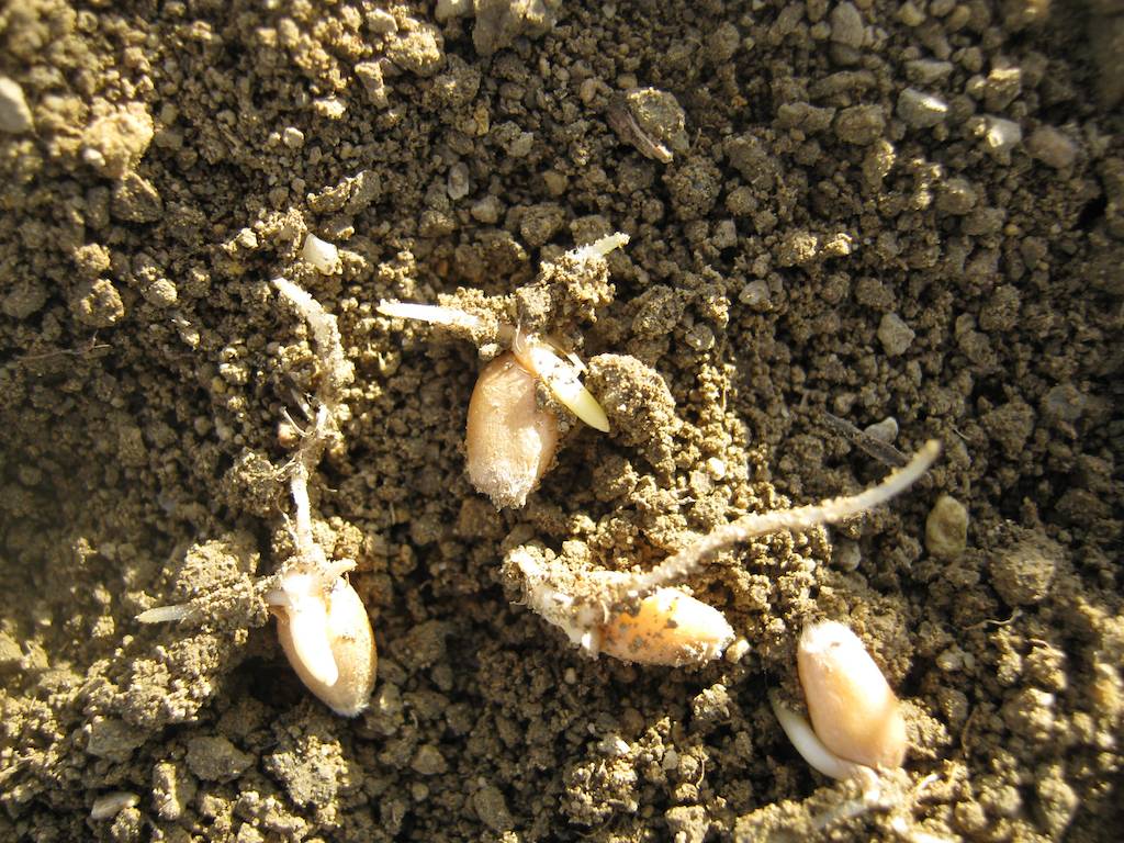 Am Montag gesät und jetzt nach vier Tagen bereits so kräftig gekeimt: offenbar hat es noch genügend Feuchtigkeit im Boden und die immer noch sommerlichen Temperaturen (heute zum Beispiel 27°C!) fördern das Wachstum.