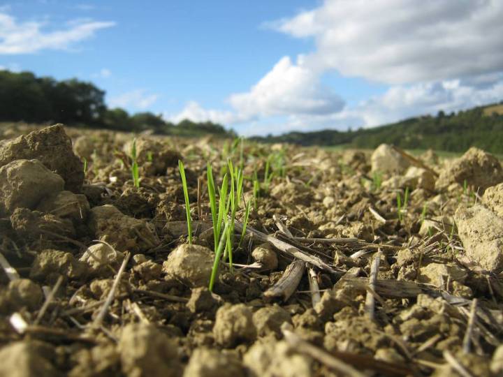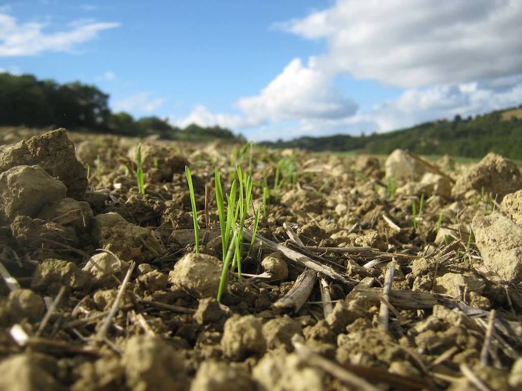 Erstaunlich, nur knapp eine Woche nach der Saat haben die Getreidekeimlinge bereits eine Höhe von 3 cm! Das Chlorophyll (Blattgrün) leuchtet in der Herbstsonne. Der Ackerbauer staunt (immer wieder!) und freut sich!