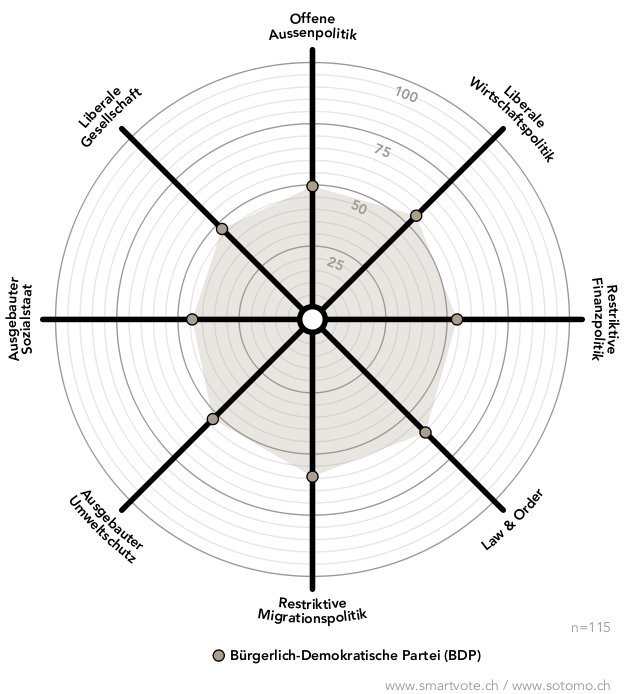 … während sich die kleine Bürgerlich Demokratische Partei (BDP) in allen Fragen ganz um die politische Mitte gruppiert…