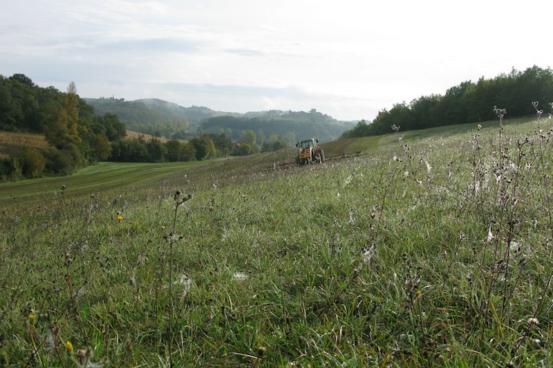 … Weizen striegeln mit viel Fingerspitzengefühl. 18 Tage nach der Saat.