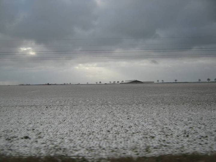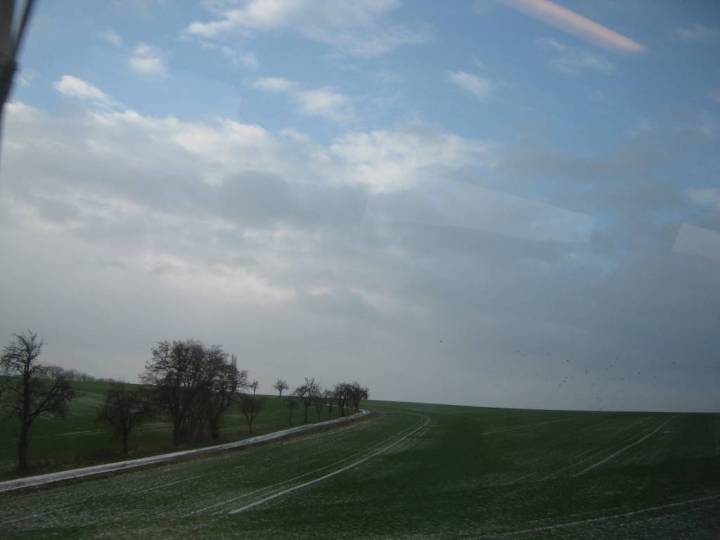 … mit dem Zug entlang von weiten LPG-Äckern