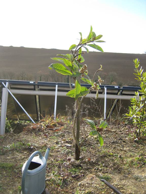 Vielleicht erinnern Sie sich, mit einem pflanzenbaulichen Trick haben wir von unserem Nefles-Baum vor einem halben Jahr einen Setzling gezogen.