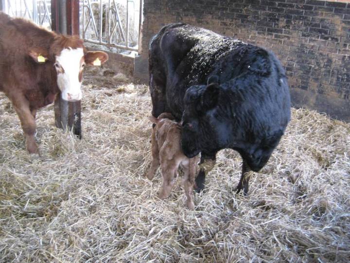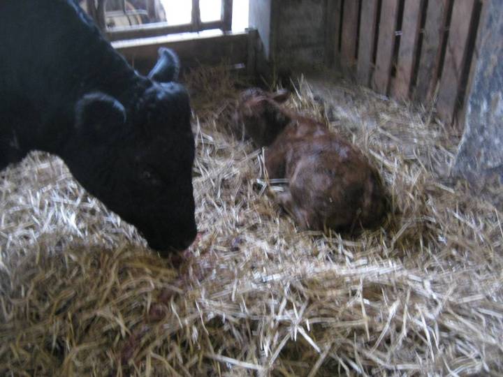 Die Mutterkuh ist Ausländerin (Angus) und auch der Vater-Muni ist Ausländer (Aubrac-Stier).