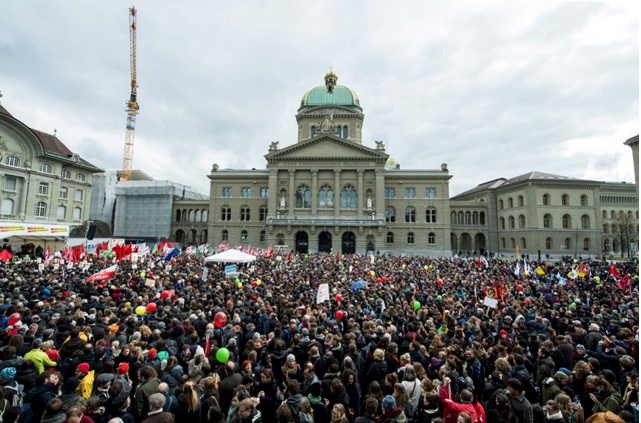 On peut leur dire, puisque bien sûr ils aiment tous notre patrie d’une manière différente, que la place fédérale à Berne n’est pas la place Tahir du printemps arabe, ni le square Zucotti à Manhattan de Occupy Wall Streeet, ni la Plaça del Sol, celle des indignés, ni même la place Maïdan à Kiev. C’est juste notre petite place entre trois banques, un bistrot et un parlement.