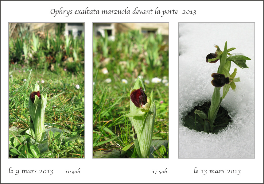 Jetzt kann man den ersten Orchideen wieder beim Erblühen zuschauen: innerhalb weniger Stunden entwickelt sich eine Knospe zur vollen Blüte. Und wie jedes Jahr macht vor unserer Türe genau die gleiche Orchidee als erste den Knopf auf: eine Ophrys de mars. In der Schweiz heisst sie: spinnenähnliche Ragwurz (Ophrys arachnitiformis).