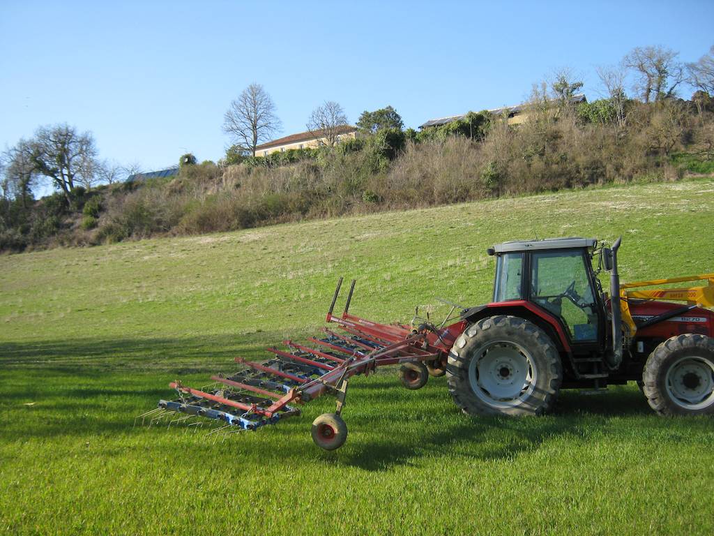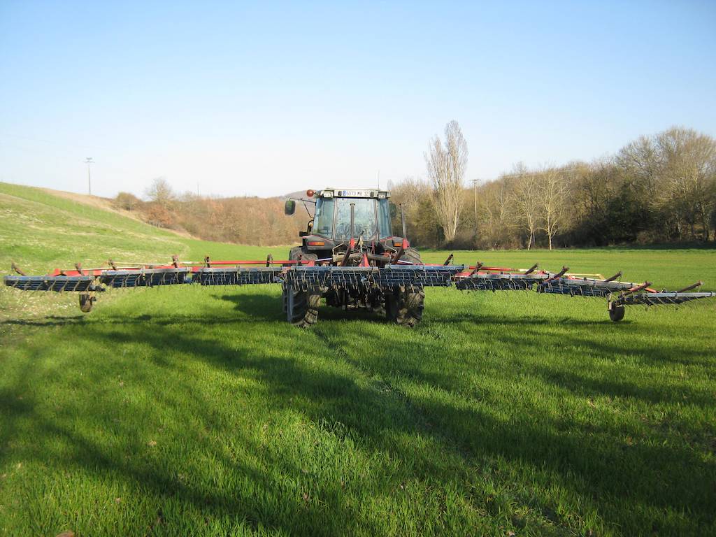 Etwas profaner: Striegeln, mechanische Unkrautbekämpfung im Winterweizen, 20 ha, 20°C