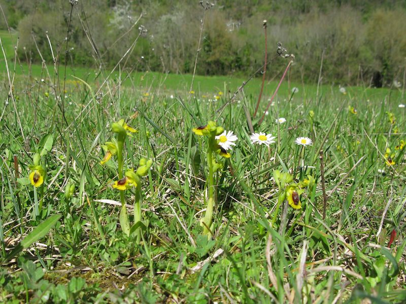 und versteckt im Gras die kleinen Ophrys lutea / gelbe Ragwurz: