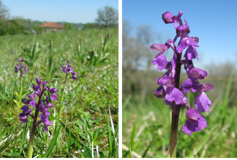 und dazwischen das kleine Knabenkraut / Anacamptis morio: