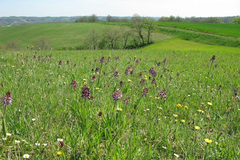 Wiese mit Orchis purpurea (Purpur-Knabenkraut)Bild