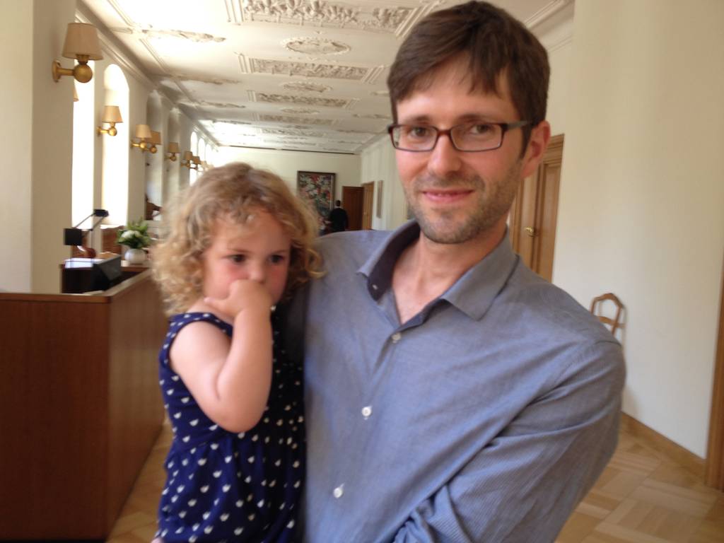 … wo Kilian Baumann schon Besuch erhält: Töchterchen Juna mit ihrem Papa in der Wandelhalle…