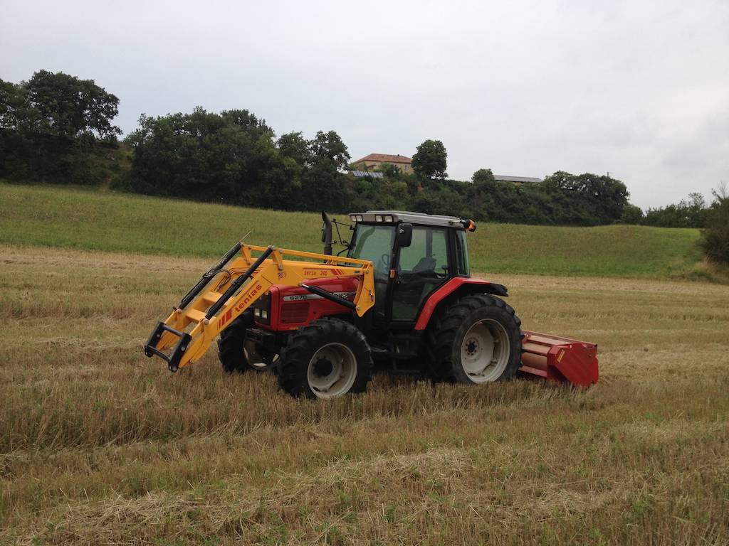 Broyen ist französisch und bedeutet Pflanzenreste (Stroh, Getreidestoppeln, Gras, Luzerne usw.) häckseln, damit diese anschliessend als Gründüngung in die Ackerkrume eingearbeitet werden können. Da sich seit einem Jahr praktisch kein Heu mehr verkaufen lässt broye ich auch grössere Luzerneflächen. Dafür habe ich seit zwölf Jahren keine Düngemittel zugekauft, auch keine organischen Dünger (z.Bsp. buchon de plume) die im Biolandbau zugelassen wären.
