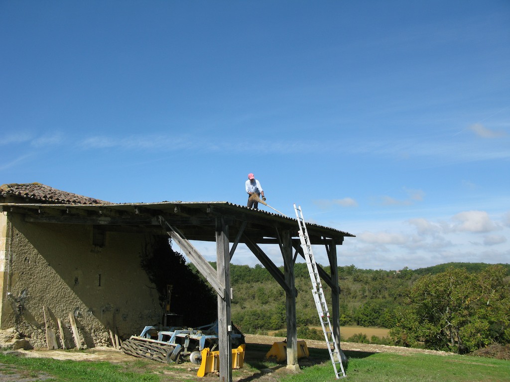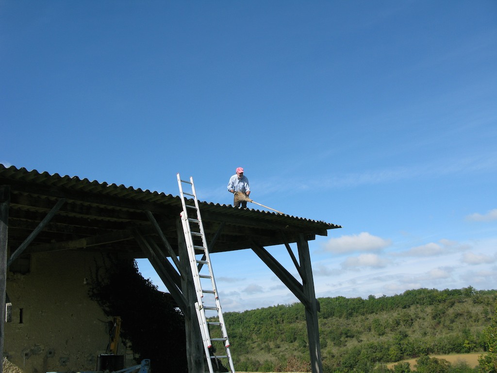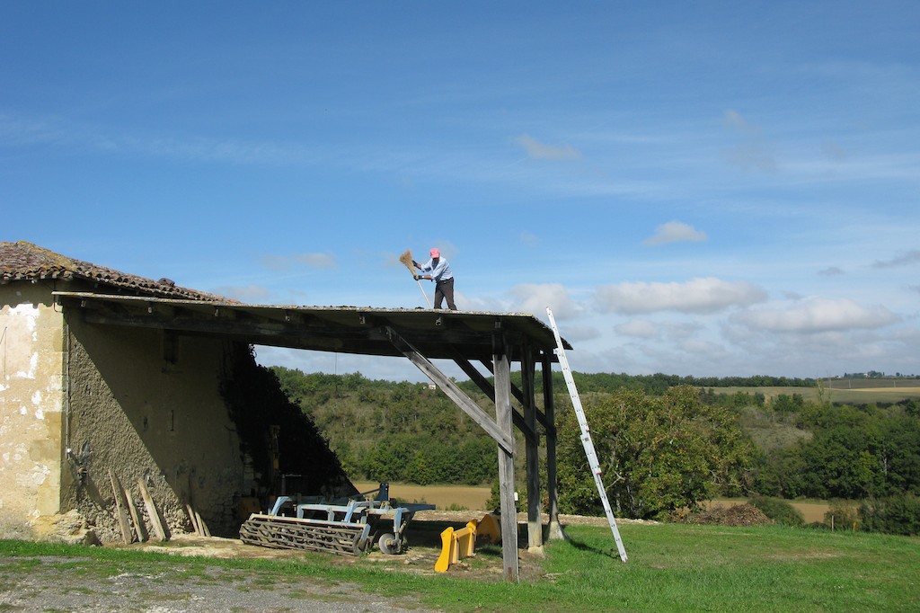 Von Zeit zu Zeit müssen die Scheunendächer vom Moos befreit werden…