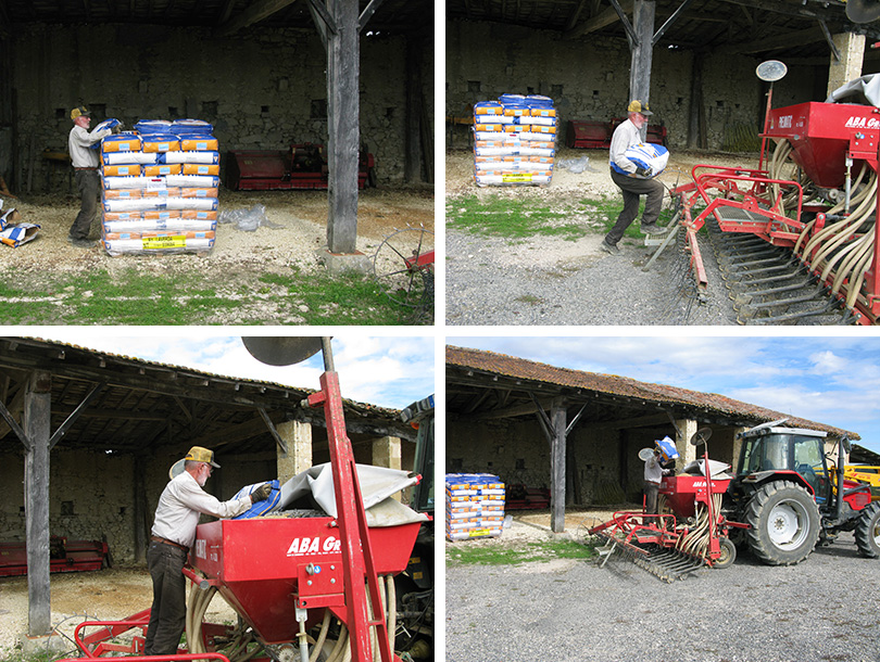 Weil die Bigbags immer grösser werden, habe ich mich dieses Jahr für Saatgut in Kleinsäcken (25 kg) entschieden. Das heisst 200 mal Sack buggeln… Immerhin kann ich mir damit das Fittnessstudio ersparen!