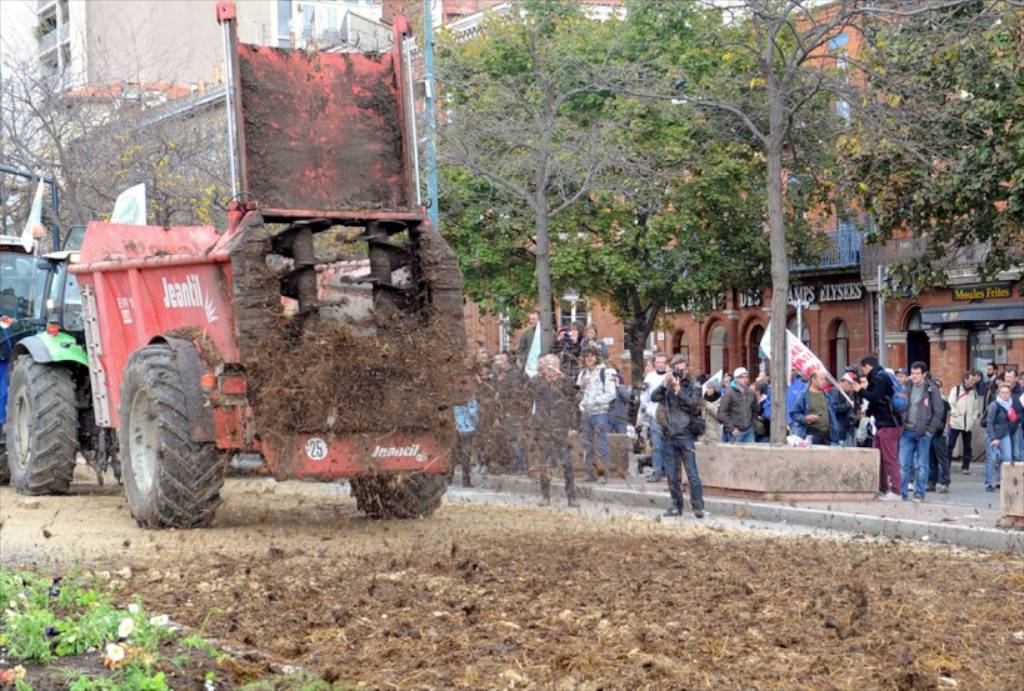… dass sich die französischen Bauern mit ihren gewaltsamen Demonstrationen in Toulouse bei der nichtbäuerlichen Bevölkerung Sympathiepunkte holen. Mit Mist und Gülle haben sie vor den Büros der Umweltschutzbehörden und der Grünen demonstriert. Der Grossbauernverband FNSEA und die sog. Jeunes Agriculteurs (JA) sind wütend, weil es bei landwirtschaftlichen Grossprojekten („ferme des mille vaches“, barage de Sivens) immer wieder Verzögerungen gibt. Zudem bekämpfen sie lautstark Umweltvorschriften, die den Nitrateintrag in die Gewässer beschränken sollen.