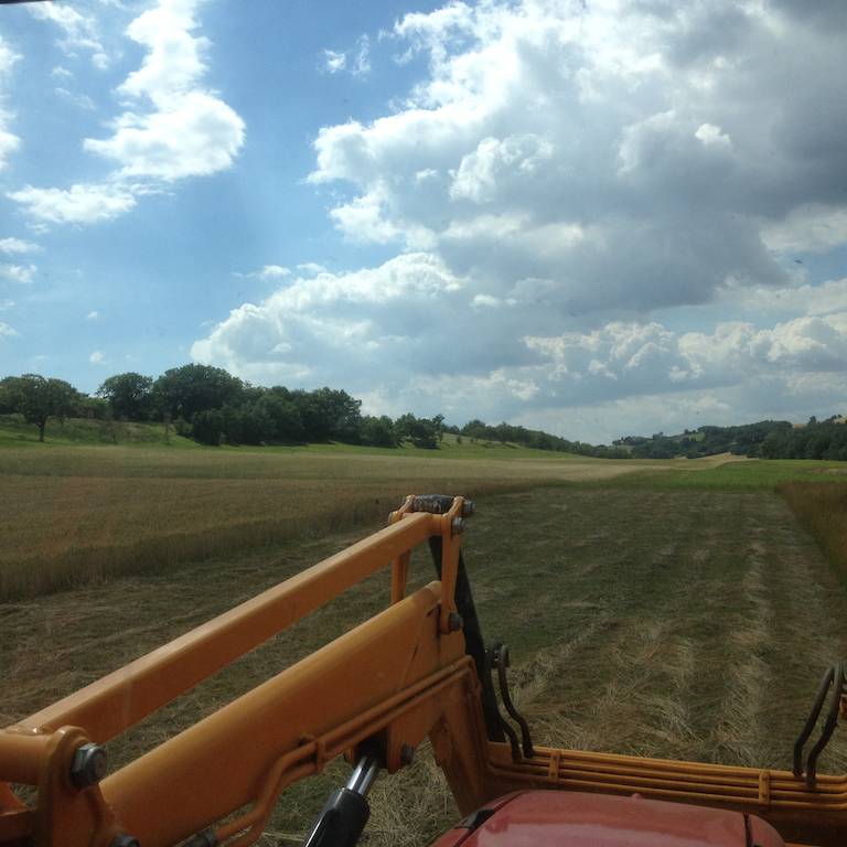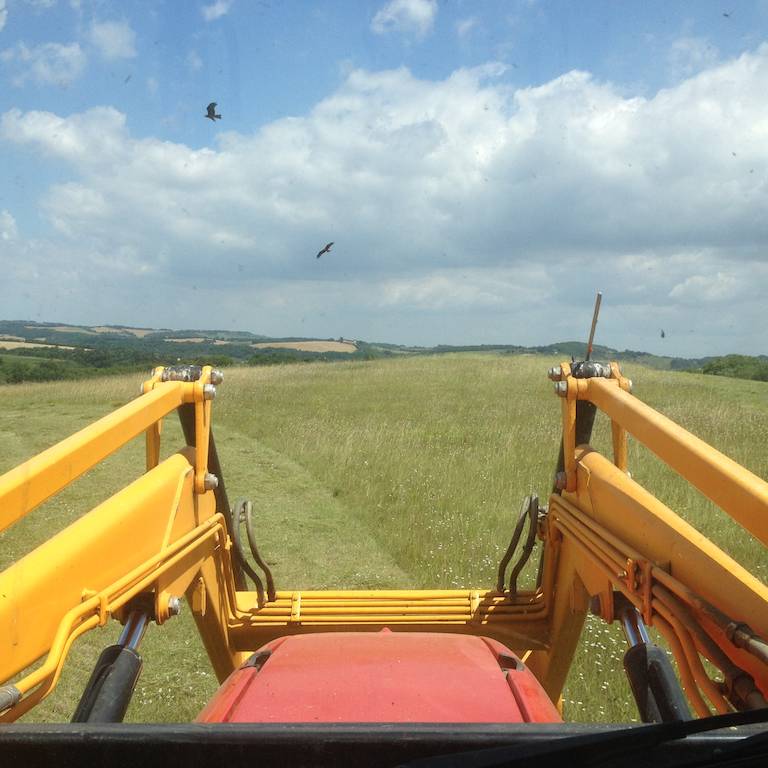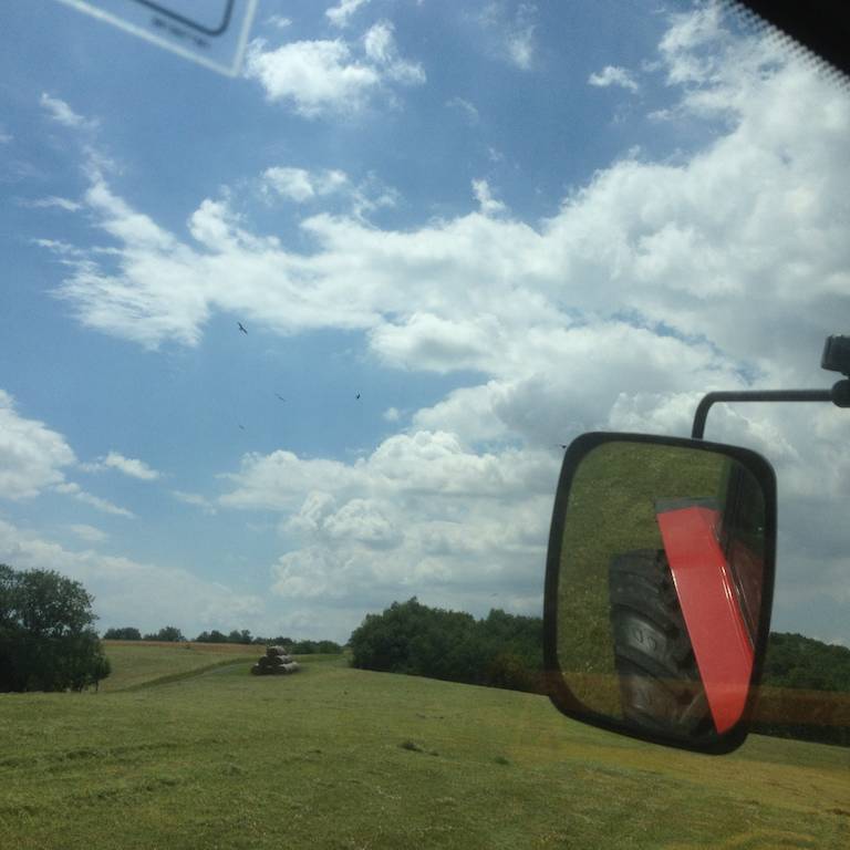 Bei meiner Arbeit werde ich von Dutzenden von Raubvögeln begleitet, die mit ihren abenteuerlichen Flugkünsten versuchen, die durch die Mähmaschine aufgeschreckten Insekten zu fangen. Eine Flugschau der Suprelative!