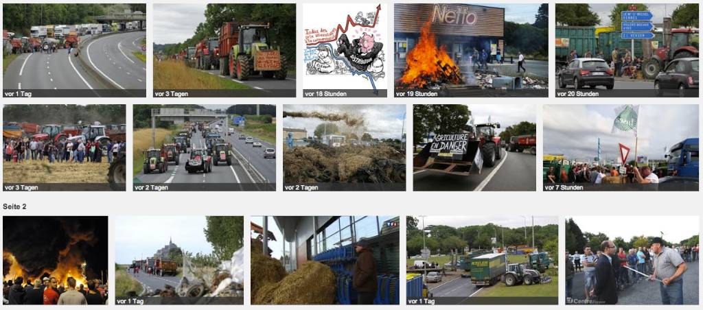 Im Augenblick wird im französischen Parlament (einmal mehr) heftig über die Landwirtschaftspolitik gestritten. Die Debatte wird live auf TV3 übertragen. Ausgangspunkt sind die zahlreichen Aktionen und Strassenblokaden der Bauern im Norden Frankreichs. Präsident Holland hat höchstpersönlich 24 dringliche Massnahmen angeordnet, wohl wissend, dass sich sonst die Krise und die Protestaktionen weiter ausweiten könnten.