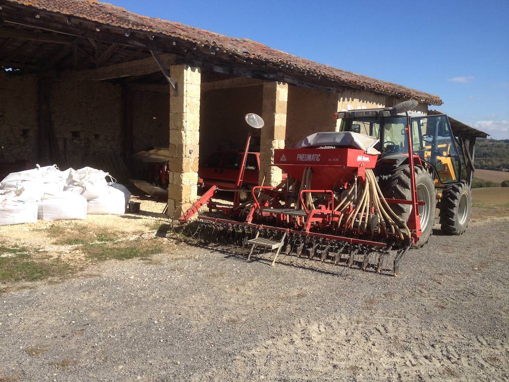 Alles bereit zur Aussaat. Das Saatbett ist bereit. Das Bio-Saatgut (Févéroles und Blé tendre) bereit in Bigbags.