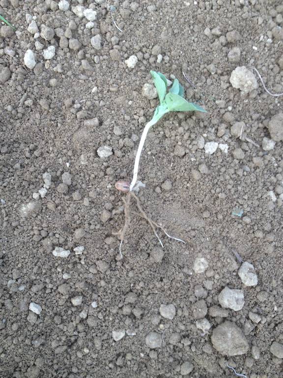 … die jungen Bohnenpflanzen sollten intakt bleiben und nur die Unkräuter gejätet werden…
